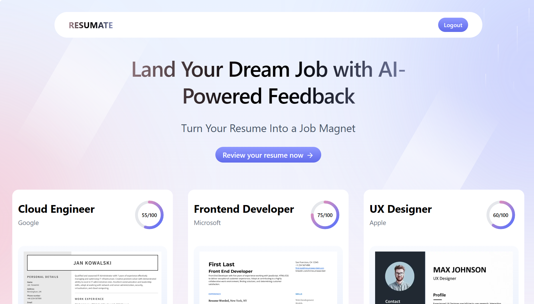 Resumate is an AI-powered resume analysis platform that helps job seekers optimize their resumes for ATS and recruiter screening.